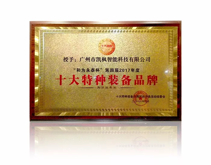 其中,广州凯枫在此次颁奖大会上荣获2017年度“十大特种装备品牌”奖。